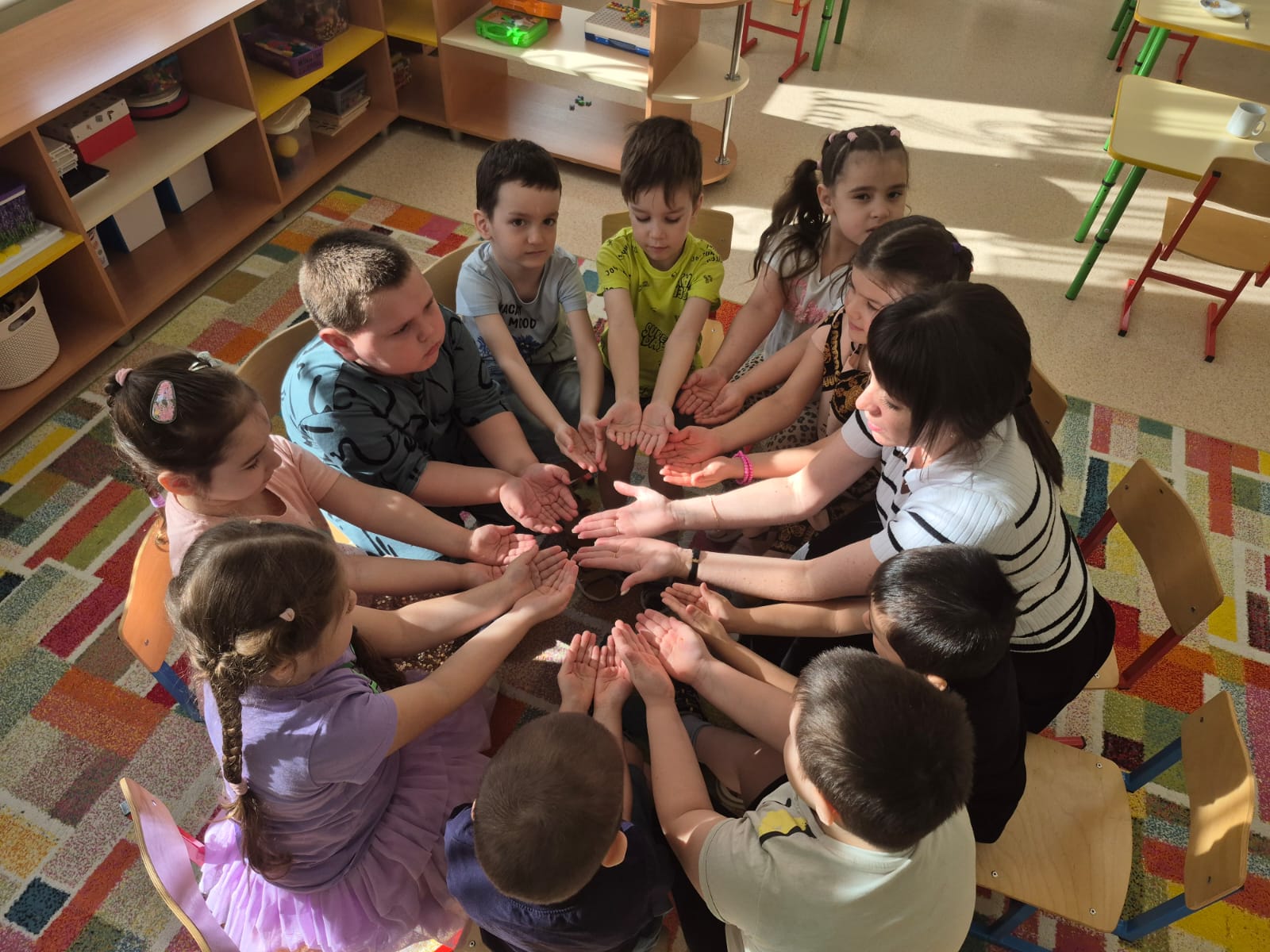 Традиции детского сада - это регулярные мероприятия и ритуалы, которые создают атмосферу доверия, стабильности и коллективизма, способствуют воспитанию детей и формированию у них чувства общности, сопричастности и привязанности к детскому саду. К ним относятся: ежедневные утренние круги и ритуалы приветствия. проведение праздников и тематических мероприятий, совместное творчество детей и родителей, а также ознакомление с народными играми, песнями и сказками.
